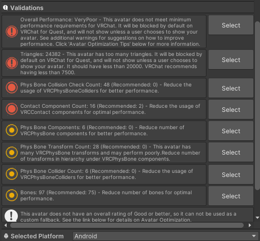 Rotation Constraintscan NOT be uploaded to quest.This means that your Elbows, Knees and Butt will not deform as well as on PC.