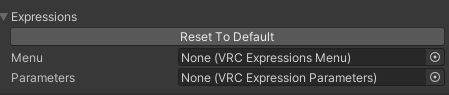 The avatar descriptor intentionally has the Blink, Playable Layers, Menu and Parameters left blank! These are added via a VRCFury script separately so you can add your own layers here!